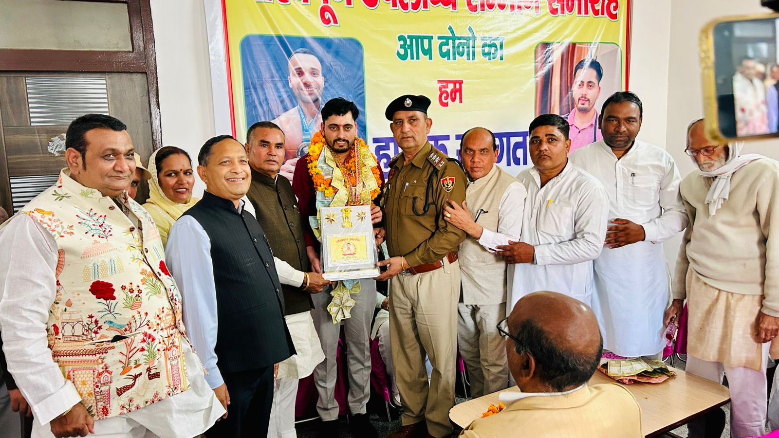 नारनौंद में समस्त समुदाय की ओर से एक गरिमामय सम्मान समारोह का आयोजन किया गया, जिसमें डेमोक्रेटिक मेडिकल एसोसिएशन (DMA India) के राष्ट्रीय अध्यक्ष डॉ. अमित व्यास एवं बॉडी बिल्डिंग प्रतियोगिता में रजत पदक प्राप्त करने वाले अंकित व्यास को सम्मानित किया गया।