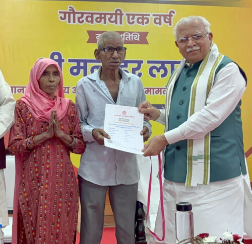 चंडीगढ़। हरियाणा सरकार के तीसरे कार्यकाल का एक वर्ष पूर्ण होने के उपलक्ष्य में आज शुक्रवार को फरीदाबाद में जिला स्तरीय ‘जन विश्वास-जन विकास’ समारोह का भव्य आयोजन किया गया, जिसमें केंद्रीय ऊर्जा, आवास एवं शहरी कार्य मंत्री श्री मनोहर लाल मुख्य अतिथि के रूप में उपस्थित रहे। इस समारोह की शुरुआत मुख्यमंत्री ग्रामीण आवास योजना 2.0 के तहत लाभार्थियों को 50-100 वर्ग गज के प्लॉट आवंटन पत्र वितरित करके की गयी। केंद्रीय ऊर्जा, आवास एवं शहरी कार्य मंत्री श्री मनोहर लाल ने कहा कि हरियाणा सरकार द्वारा आज प्रदेशभर में लगभग 9000 पात्र लाभार्थियों को 50-100 गज के प्लॉट आवंटित किए गए हैं। उन्होंने कहा कि यह योजना राज्य सरकार की एक विशेष पहल है, जिसके माध्यम से गरीब एवं जरूरतमंद परिवारों को स्थायी आवास उपलब्ध करवाने की दिशा में बड़ा कदम उठाया गया है।