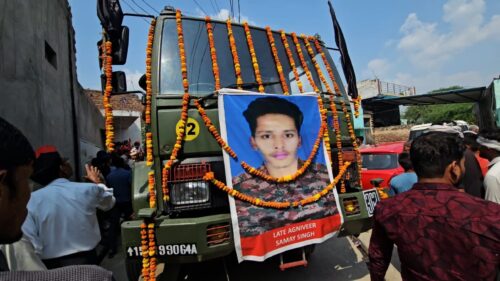 अग्निवीर समय सिंह के पिता दलबीर सिंह ने भावुक होकर कहा कि बेटे को देश की सेवा के लिए भेजा था, लेकिन भगवान को कुछ और ही मंजूर था। उन्होंने अग्निवीर योजना पर सवाल उठाते हुए कहा कि केवल छह महीने की ट्रेनिंग के बाद जवानों को इतने कठिन क्षेत्रों में तैनात करना उचित नहीं है। उन्होंने सरकार से इस योजना पर पुनर्विचार करने और इसे समाप्त करने की अपील की। दलबीर सिंह ने यह भी कहा कि गरीब परिवारों के बच्चे ही मजबूरी में अग्निवीर योजना में शामिल हो रहे हैं, जबकि नेताओं के बच्चे इस सेवा से दूरी बनाए रखते हैं। उन्होंने युवाओं के घटते मनोबल का जिक्र करते हुए कहा कि इस योजना ने देश के युवाओं का उत्साह कम किया है। अंतिम संस्कार में 14 राइफल राज यूनिट के मेजर तिवारी, राजपूताना राइफल्स दिल्ली कैंट, गुरुग्राम और मानेसर एनएसजी कमांडो यूनिट के अधिकारियों के साथ – साथ जिला सैनिक बोर्ड और उजीना गांव की पूर्व सैनिक वेलफेयर एसोसिएशन ने हिस्सा लिया। उजीना गांव के रिटायर्ड सैनिक करण सिंह ने बताया कि समय सिंह के लापता होने की खबर के बाद कई टीमें खोजबीन में जुटी थीं। डीएनए जांच के बाद उनके शव की पहचान हुई और परिजनों को सूचना दी गई। करण सिंह ने यह भी मांग की कि अग्निवीर योजना के तहत शहीद होने वाले जवानों के परिजनों को मिलने वाले मुआवजे में बढ़ोतरी की जाए। उन्होंने कहा कि मुख्यमंत्री के दौरे के दौरान पीड़ित परिवार की मांगें उनके समक्ष रखी जाएंगी। कांग्रेस विधायक आफताब अहमद ने शहीद समय सिंह की शहादत को मेवात की मिट्टी में रची – बसी देशभक्ति का प्रतीक बताया। उन्होंने कहा कि परिवार का इकलौता बेटा देश के लिए कुर्बान हुआ, इसलिए सरकार को जल्द से जल्द अधिकतम मुआवजा देना चाहिए। मुख्यमंत्री के कोऑर्डिनेटर मुकेश वशिष्ठ ने भी शहीद को श्रद्धांजलि अर्पित की और उनकी