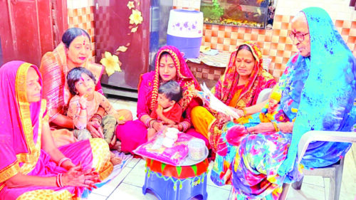 भिवानी। सुहागिनों के लिए करवाचौथ पर्व बहुत ही खास होता हैं, जिसको लेकर वह कई दिन पहले ही तैयारी करने लगती हैं। चाहे बाजार में साड़ी खरीदनी हो या चूड़ी, गहने, कॉस्मेटिक सामान, पूजन सामान या फिर पार्लर आदि की बुकिंग करनी हो, वह इसको लेकर बहुत ही खुश एवं उत्साहित रहती हैं, कि उसे करवाचौथ पर क्या खरीददना हैं और क्या क्या तैयारियां करनी हैं। करवाचौथ पर बाजार में हर तरफ महिलाओं की अच्छी खासी भीड़ नजर आती हैं। प्रत्येक दुकान पर महिलाएं खरीदारी करती दिखाई देती हैं। इस दिन सुहागिनें सोलह श्रृंगार करके अपने हाथों में अपने सजना के नाम की मेहंदी रचाती हैं और पूरे दिन भूखी-प्यासी रहकर पति की लम्बी उम्र की कामना के लिए व्रत रखती हैं और प्रत्येक वर्ष व्रत को धूमधाम से मनाने की कामना करती हैं। उल्लेखनीय हैं कि सुहागिनों ने शुक्रवार को शाम 8:10 बजे छलनी के अंदर से चांद व पति का दीदार किया और पति के हाथ से पानी पीकर करवाचौथ का व्रत खोला और उनके चरण स्पर्श कर सदा सुहागिन बनी रहने की कामना की। नाइक्लालो की गली, बिचला बाजार, कीर्ति नगर, विद्यानगर, पुराना पटवार खाना चूहड़सिंह की बाजारी, नूनसर जोहड़, हनुमान ढाणी, गुजरो की ढाणी सहित अनेक स्थानों पर सुहागिनों ने एकत्रित होकर सामूहिक रुप से करवाचौथ पर भगवान गणेशजी व चौथ माता की कथा सुनीं। सुहागिन कोमल, कमलेश, पूजा, उषा बाजवान, रेणु, सुनीता, प्रवीन, इंदु, सरिता व पूनम आदि ने बताया कि करवाचौथ व्रत हर सुहागिन के लिए बहुत ही विशेष होता हैं। महिलाओं ने दिनभर भूखे-प्यासे रहकर पति की दीर्घायु एवं स्वस्थ्य रहने की कामना की। वहीं सुहागिनों ने चौथ माता व गणेश भगवान से ताउम्र सुहागिन जीवन जीने की प्रार्थना की। दोपहर को कथा संपन्न होने के बाद सुहागिनों ने सूर्यदेव को अर्घ्य दिया और चंद्र उदय तक उनके शरीर में वहीं तेज बना रहने की प्रार्थना की, ताकि वे अपने संकल्प को पूरा कर सकें। करवा चौथ पर सुहागिनों ने अपने सजना के नाम की मेहंदी रचाई और घरों में स्वादिष्ट पकवान बनाए। शाम होते ही सुहागिनें संपूर्ण श्रृंगार के साथ सज-संवरकर पूजा की थाली हाथों में लेकर अपने पति के साथ छत पर पहुंची और छलनी के अंदर से चंद्रदेव व पति का दीदार किया। उन्होंने विधिवत पूजा-अर्चना कर चंद्रदेव की आरती उतारी और पति की दीर्घायु की कामना के साथ व्रत खोला। वहीं पति ने अपनी अपनी की जीवनभर रक्षा व सम्मान बनाए रखने का संकल्प किया।