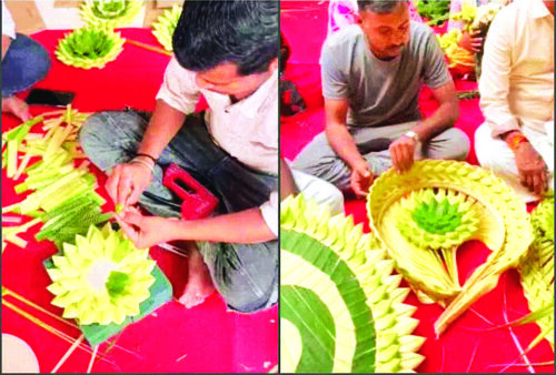 मंदिर के गर्भगृह को केले के पत्तों और रंग-बिरंगे आयातित फूलों से पारंपरिक और दक्षिण भारतीय शैली में सजाया जा रहा है।