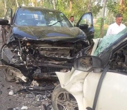 Road accident । हरियाणा में सोमवार को सड़क पर काल ने अपना तांडव दिखाया। कुरूक्षेत्र में दो कारों के बीच हुई आमने सामने की टक्कर में यमुनानगर के एक ही परिवार के पांच लोगों की मौत हो गई, जबकि पांच अन्य गंभीर रूप से घायल हो गए। घायलों को अस्पताल में में भर्ती करवाया गया। सूचना के बाद पुलिस ने शवों को कब्जे में लेकर मामले की जांच शुरू कर दी। हादसे के बाद घटना स्थल पर हाहाकार मच गया। नूँह जिले में एक बार फिर तेज रफ़्तार का कहर देखने को मिला है । तेज रफ़्तार के कारण दो अलग – अलग सड़क हादसों ने तीन जिंदगियाँ छीन ली।