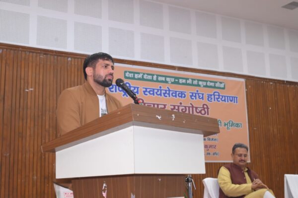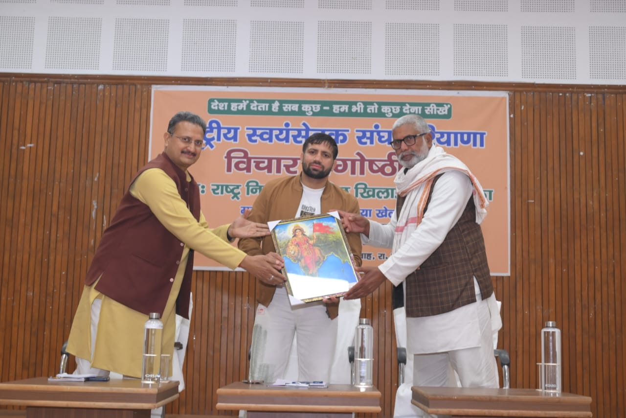 पानीपत। राष्ट्रीय स्वयंसेवक संघ के सह सरकार्यवाह आलोक कुमार ने कहा कि संघ के 100 वर्ष पूरे होने पर संघ आज शताब्दी वर्ष मना रहा है लेकिन संघ द्वारा शताब्दी वर्ष मनाने का उद्देश्य अपना गुणगान या अपना महिमामंडन करना नहीं है। संघ चाहता है कि देश को आगे बढ़ाने के लिए पंच परिर्वतन का जो संकल्प है उस पर देश के लोग एकजुट होकर उस पर काम करें। सामाजिक समरसता, पर्यावरण संरक्षण, स्वदेशी, कुटुम्ब प्रबोधन, कर्त्तव्य बोध को अपना कर ही देश पुन: विश्व गुरु के पथ पर आगे बढ़े पाएगा। आलोक कुमार रविवार को राष्ट्रीय स्वयंसेवक संघ द्वारा पानीपत के एसडी कॉलेज में “राष्ट्र निर्माण में खेल-खिलाड़ी की भूमिका” विषय पर एक विचार संगोष्ठी को सम्बोधित कर रहे थे। कार्यक्रम में मुख्यातिथि के तौर पर ओलम्पिक पदक विजेता रवि दहिया ने शिरकत की। इस अवसर पर राष्ट्रीय स्वयंसेवक संघ हरियाणा के प्रांत संघचालक प्रताप, प्रांत प्रचारक डॉ सुरेंद्र पाल, खेल विश्वविद्यालय राई के कुलपति एवं उत्तराखंड के पूर्व डीजीपी डॉ अशोक, अंतर्राष्ट्रीय पहलवान योगेश्वर दत्त, भारत की पहली महिला पैरा ओलम्पिक पदक विजेता दीपा मलिक, सुनील डबास सहित पदमश्री, द्रोणाचार्य अवार्डी, अर्जुन अवार्डी, भीम अवार्डी सहित भारी संख्या में अंतर्राष्ट्रीय व राष्ट्रीय स्तर के खिलाड़ी मौजूद रहे।
