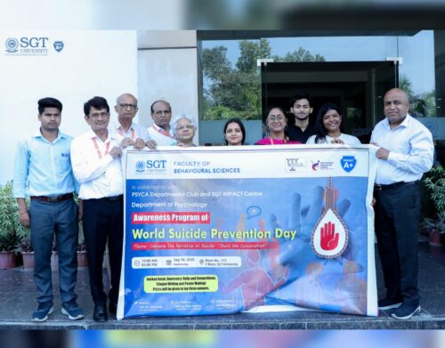 व्यावहारिक विज्ञान संकाय, एसजीटी यूनिवर्सिटी, गुरुग्राम द्वारा साइका डिपार्टमेंटल क्लब और एसीटी इम्पैक्ट सेंटर के सहयोग से विश्व आत्महत्या रोकथाम दिवस पर समग्र जागरूकता कार्यक्रम का आयोजन किया गया।